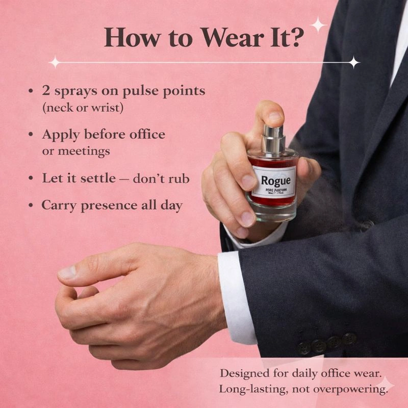 Clean and subtle. Not loud at all. Meetings ke liye safe choice. Close range pe classy feel deta hai.