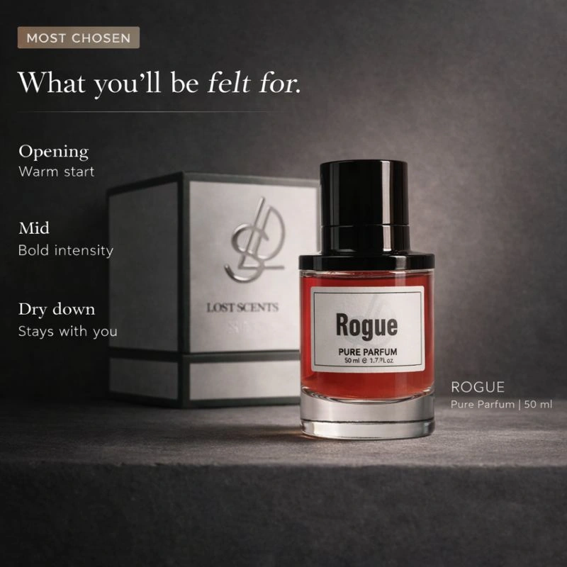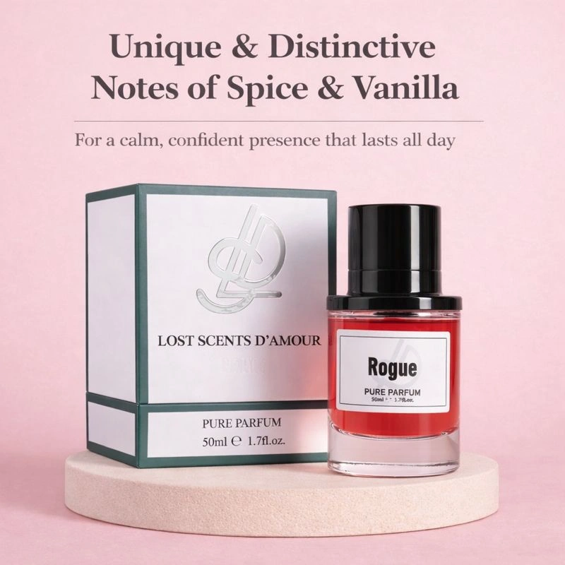 Rogue is a daring fusion of strength and sensuality. It opens with an intriguing contrast of bitter almond and saffron, unfolding into a heart of cedarwood and amberwood, radiating warmth and depth. The dry down features earthy fir resin and musk, grounding the fragrance in a powerful yet comforting aura. This woodsy floral-amber composition is perfect for those who embrace their bold side.