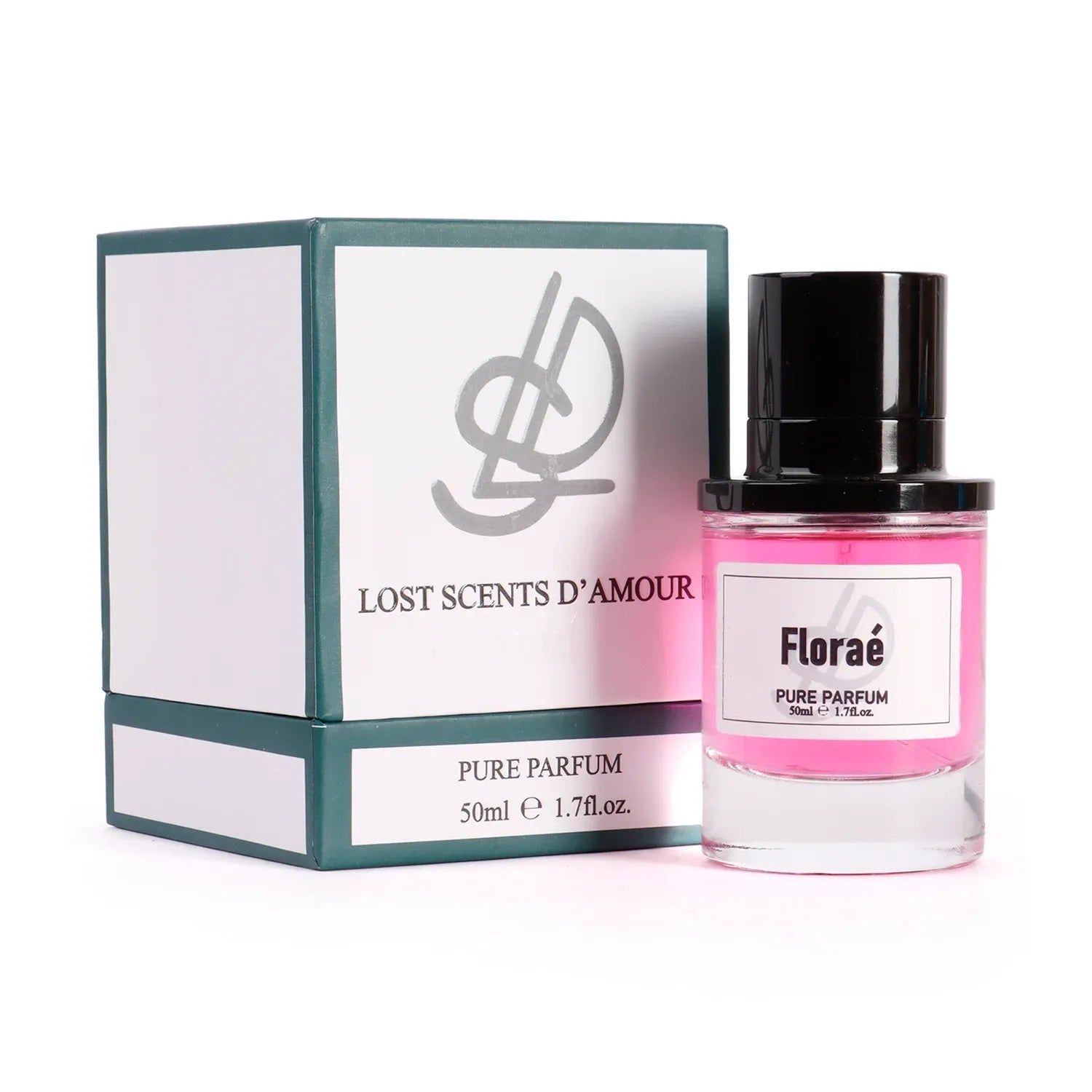 Florae is a breezy floral fragrance that feels like walking through a sunlit garden. It opens with a juicy trio of pear, red berries, and Italian mandarin, creating a fruity, sparkling first impression. At its heart, delicate gardenia, tropical frangipani, and luminous jasmine bloom gracefully. The scent settles into a soft and sweet base of brown sugar and patchouli, giving it a subtle earthy warmth. Perfect for daily wear and spring-summer days.